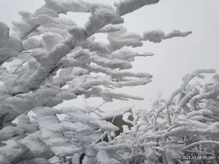 今晨全省气温低迷,浙北最低气温仅4-6℃,其中杭州创下了入秋以来最低气温6.0℃。临安区天目山景区今晨飘起零星小雪,位于海拔1506米的仙人顶上,在雪和雾凇的“加持”下,目前已是银装素裹,煞是好看。