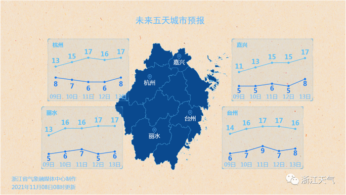 好消息是这周开始全省晴好天气打底,但今天浙江沿海海面和内陆平原风力仍较大,在风寒效应下,“冷”依旧占C位。