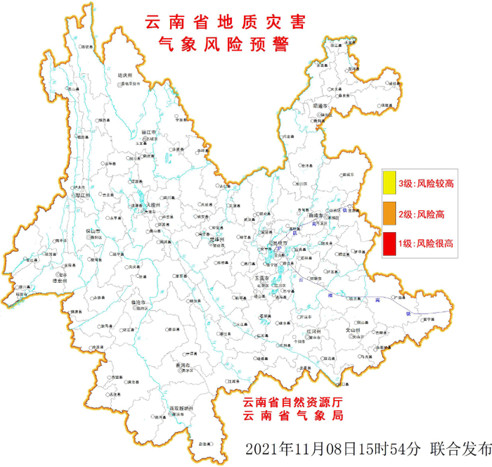 2021年11月08日20:00~11月09日20:00,全省无三级及三级以上地质灾害气象风险预警。