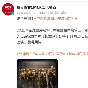 电影《长津湖》海外发行方9日宣布,《长津湖》即将于11月19日在美国、加拿大上映,12月2日在澳大利亚上映。《长津湖》也将于本月11日登陆新加坡院线,英国、爱尔兰、马来西亚也已确认引进。