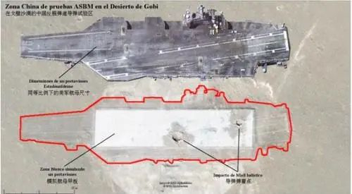 报道称,根据最新卫星照片研判,解放军在新疆塔克拉玛干沙漠新建大批复合设施,包括等比例的美军航母与“阿利·伯克”级驱逐舰轮廓的靶标,甚至还能模拟移动中的舰艇。“这种复杂设施证明,解放军正在发展包括反舰弹道导弹在内、足以威慑那些敢于靠近中国的美国航母编队的能力”。