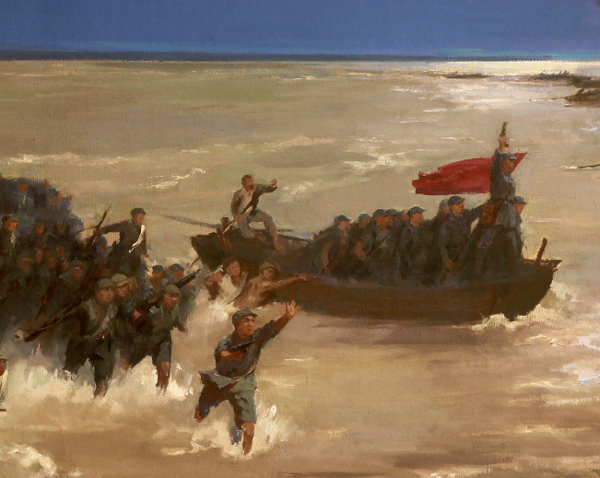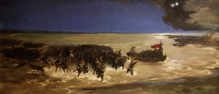 1961年,艾中信将解放军夜渡黄河的军事行动搬上画布,为观众留下直观形象的历史记忆。