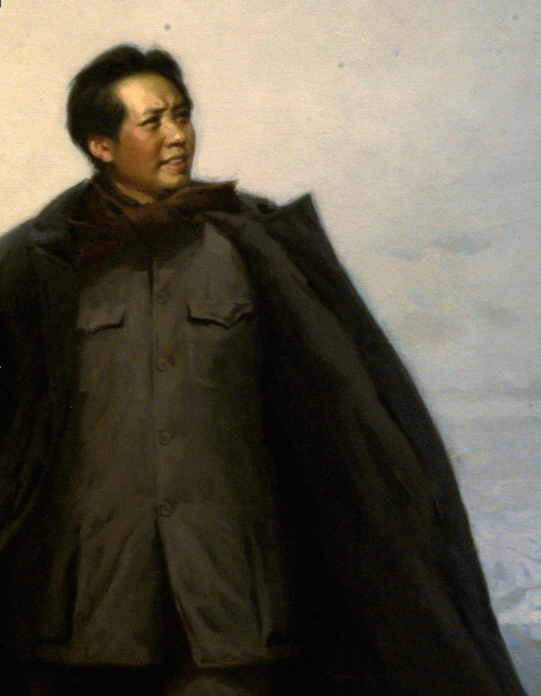 油画的艺术风格契合画家着力追求的“历史肖像”原则。北国雪天的大面积背景下,天地一体,大气磅礴。方寸之间,“睥睨六合,气雄万古”的英雄气派尽显。画家使用典型环境中的典型性格艺术手段,通过渲染烘托形象,集中再现历史人物及事件的本质,毛泽东山一样的体魄,与祖国壮丽河山相映生辉。画家笔下,领袖形象的塑造完美融汇在宏大的历史叙事之中,经典之词成功演绎为雄浑之作。