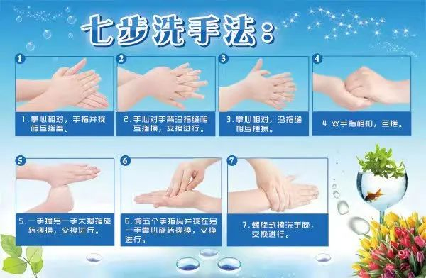 4、做好手卫生。接触公共区域物品后,及时用标准的七步洗手法,在流动水下使用肥皂、洗手液搓揉双手不少于20秒后冲洗干净,或用速干手消毒剂揉搓双手。