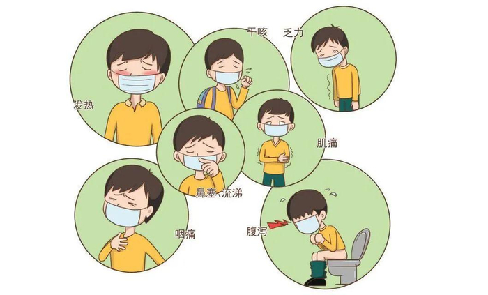 根据《新型冠状病毒肺炎诊疗方案(试行第八版 修订版)》,新冠病毒肺炎以发热、干咳、乏力为主要表现。部分患者以嗅觉、味觉减退或丧失等为首发症状,少数患者伴有鼻塞、流涕、咽痛、结膜炎、肌痛和腹泻等症状。