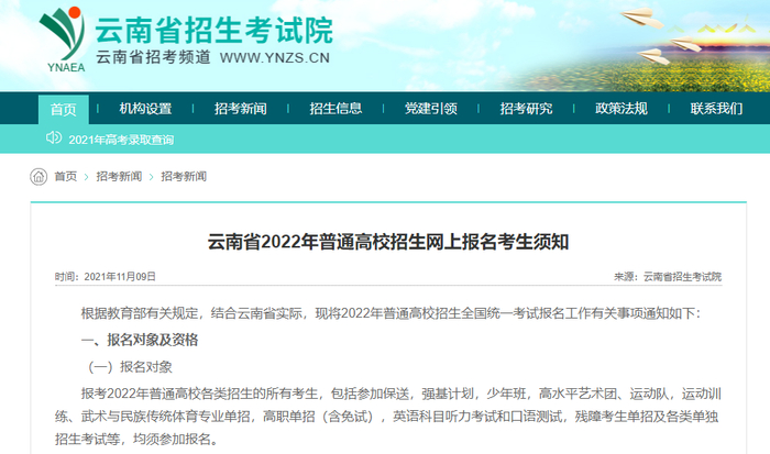 云南省招生考试院发布