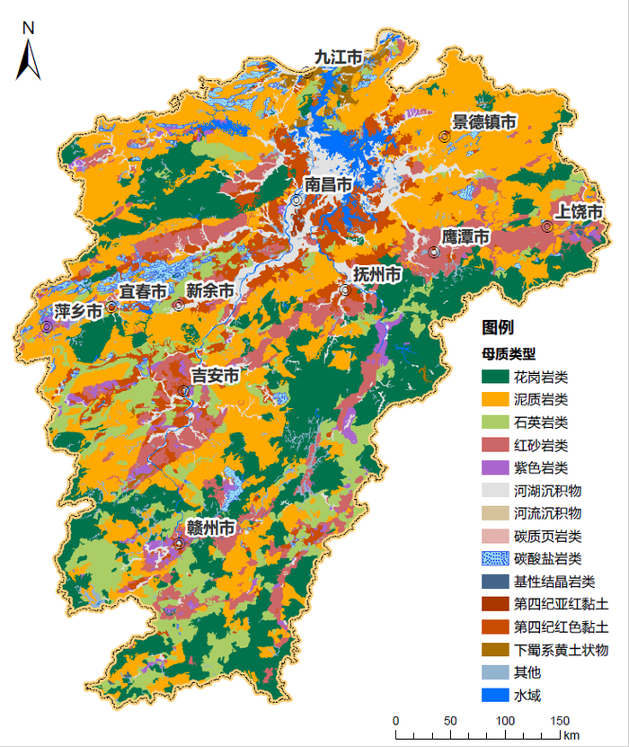 ▲江西省土壤母质分布长期以来,囿于土壤分类研究的庞杂性和基础性,土系鉴定工作在我国一直处于空白状态。