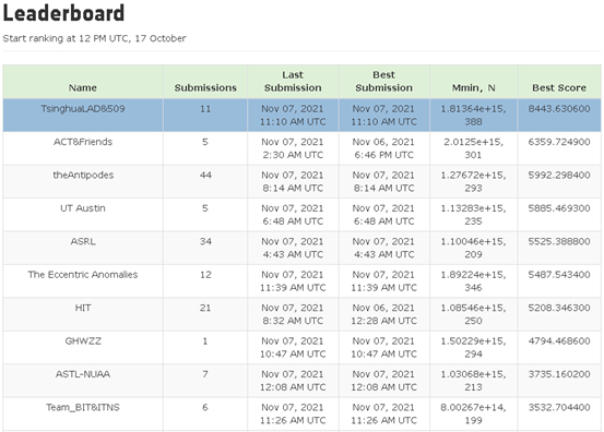 “一年前是我第一次参加国内轨道竞赛。当年由于自己和队友们经验不足,在最后一天被反超,仅拿到第二名,当时感觉非常遗憾!最近一年自己仍然继续着轨道设计领域中组合优化问题的研究,能力有了很大提升,因此对这次竞赛抱有很大期望。” 团队成员张楠说。