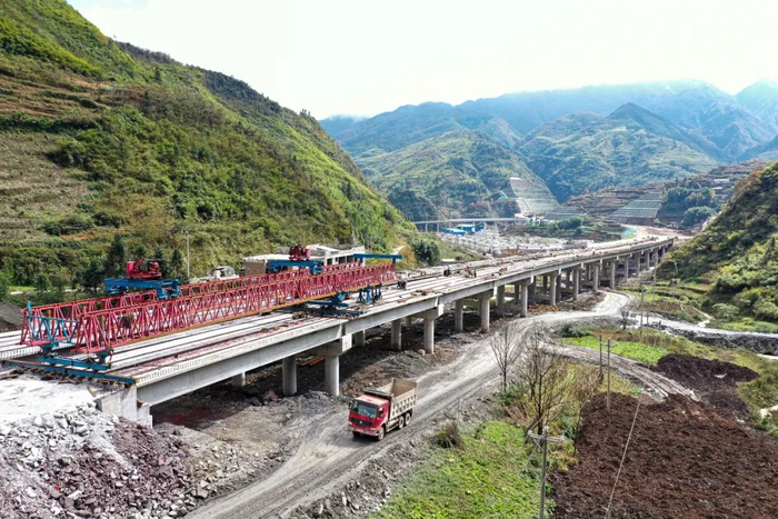 11月4日,宜(宾)至昭(通)高速二期小草坝连接线LK1+240大桥左幅T梁架设完成,标志着LK1+240大桥已双幅架通。