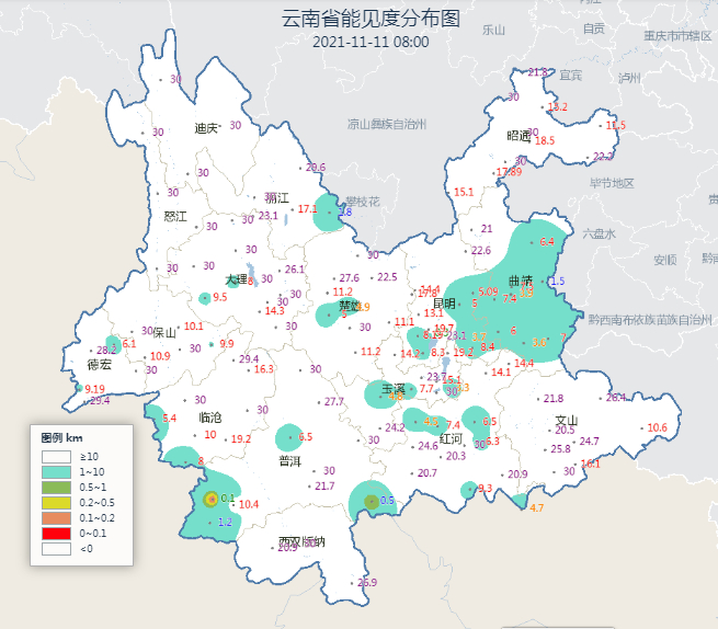 11月12日20时到11月13日20时:昭通南部、曲靖、昆明、楚雄、玉溪、文山西部、红河阴有小雨,迪庆北部多云有阵雪,怒江北部、保山、德宏、大理南部、丽江东南部、临沧、普洱、西双版纳多云有阵雨局部中雨,其他地区多云。