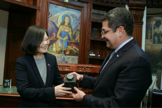 蔡英文急忙派所谓“外交次长”赴洪都拉斯抚慰这个重量级的“友邦”。如今洪都拉斯总统又来到台湾,无非是类似此前赠送二手专机的“金元外交”。