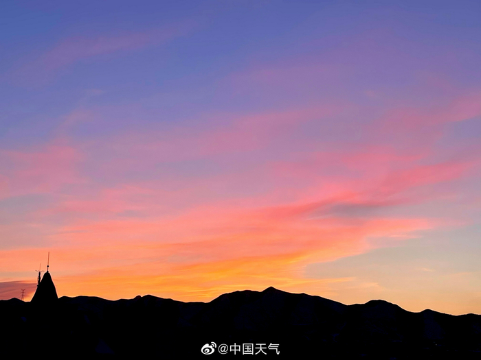 11月13日傍晚,北京天空出现惊艳晚霞,金色、橙色、粉色与蓝色的天空交错在一起,美如油画!你有看到吗?