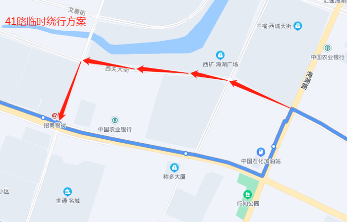 由东向西原线路行驶至海湖路、西关大街恢复原线路;海湖路南、水校、千家福家居三站暂不停靠。