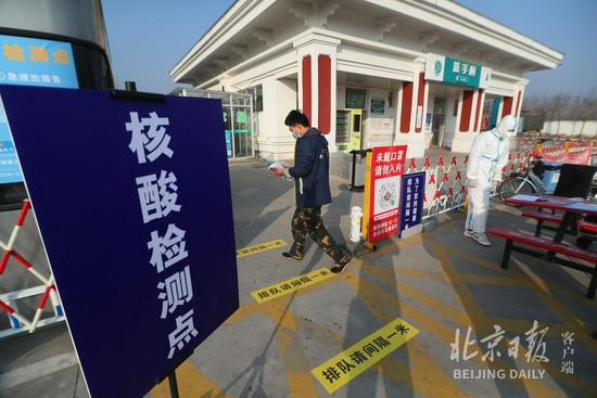 司机赵先生今天准备从河北进京送货,昨晚在通州交警公众号上看到了进京需提交核酸检测阴性报告的消息。“当时已经来不及去医院了,看见公众号上提示在服务区可以做核酸检测就直接来了。”赵先生说,做完采样,签署了承诺书,就可以拿着去检查站查验了,全程也就十分钟时间。“还是很方便的,省得跑医院了。