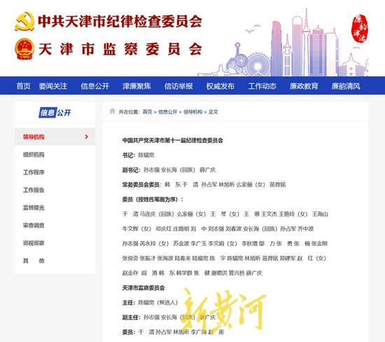 据天津市纪委监委网站11月17日更新“领导机构”栏目信息显示,陈辐宽已经担任天津市纪委书记、监委主任候选人。此前,陈辐宽系山东省纪委书记。
