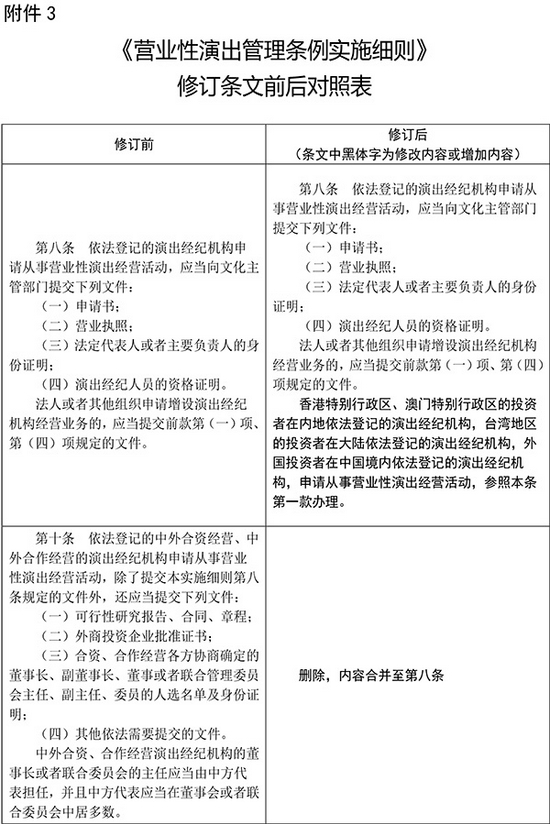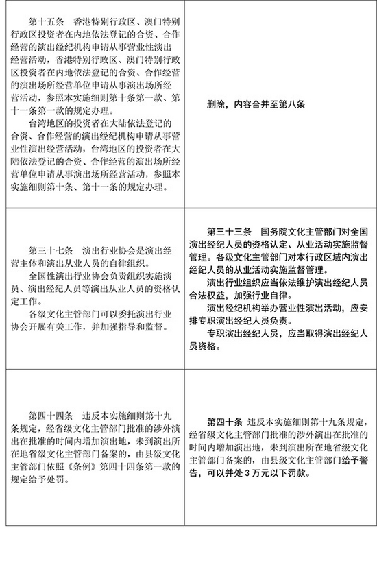 此外,本草案对《营业性演出管理条例实施细则》的条款顺序一并做相应调整。