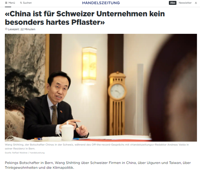 中国驻瑞士大使接受瑞媒专访 就涉疆涉台问题和所谓“中国间谍”等谣言一一批驳!