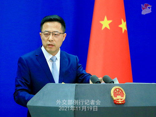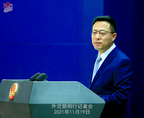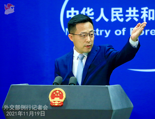 原标题:2021年11月19日外交部发言人赵立坚主持例行记者会