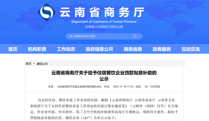 原标题:【公示】云南14家住宿、餐饮企业拟获补助