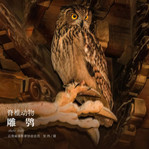 雕鸮,隶属脊椎动物,鸟纲,鸮形目,鸱鸮科,雕鸮属。别名恨狐、鹫兔、角鸱、雕枭。多栖息于植被茂盛,人迹罕至的密林中,国内多地均有分布。照片摄于大理。