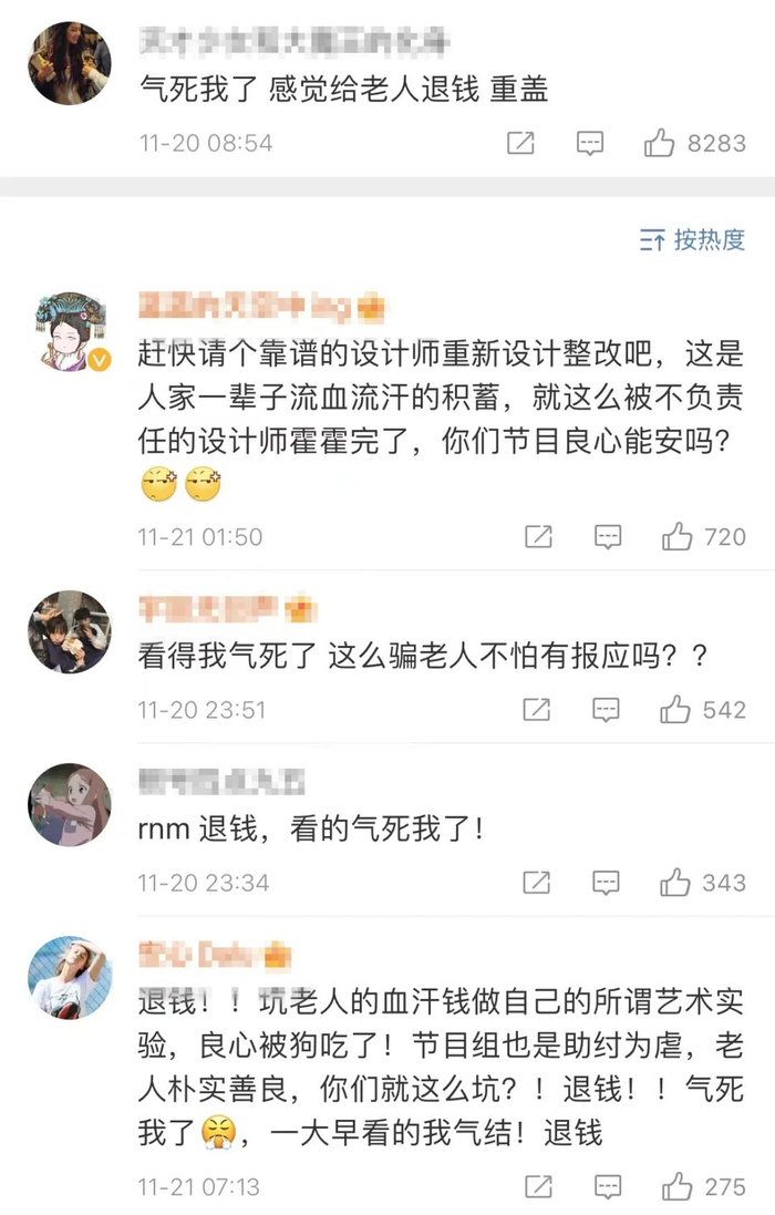 而建筑师@TAOA陶磊建筑 秉持着不多加装饰的设计追求,几乎只使用红砖的做法,也遭到不少网友吐槽改建后的房子宛如“毛坯房”。整个房子的改造费用高达132万元,绝大部分都需委托人承担,节目组仅提供5000元装金,更是让网友坐不住,喊话建筑公司退钱,认为陶磊为了实现自己的设计理念,没有充分考虑到业主的个人意愿、生活所需和预算成本。