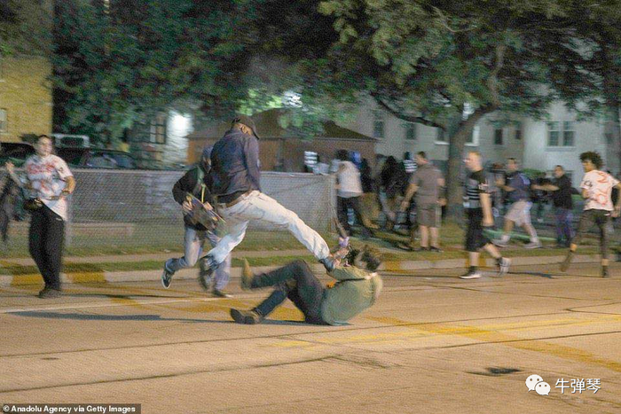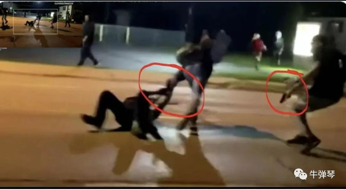8月25日晚,基诺沙继续骚乱,持枪的里滕豪斯就与抗议者发生了冲突,似乎落单的他,遭到一群抗议者追打。
