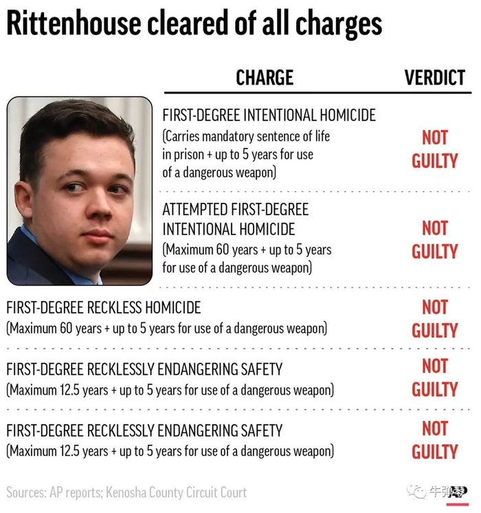 11月19日,在传唤了数十名证人,经过长时间的审议后,美国威斯康星州基诺沙巡回法院作出裁定,里滕豪斯被判5项罪名均不成立。