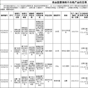 金麟(福建)食品有限公司2021年6月13日生产的海苔苏打饼干,过氧化值(以脂肪计)不合格,销售单位为厦门市兴人和商业管理有限公司五缘湾店,初检机构为福建省产品质量检验研究院,复检机构为厦门市产品质量监督检验院;