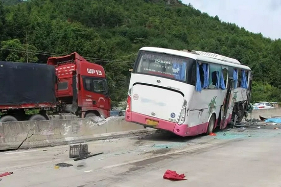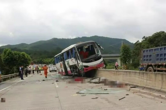 事故造成粤G***59大客车上乘客6人当场死亡(3名女性成人、2名男性成人、1名男性儿童)、1人抢救无效死亡(男性成人)和2人轻伤、9人轻微伤。