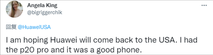 “我真心希望华为能重返美国。我用过一台华为P20 Pro,这真的是一款不错的手机。”