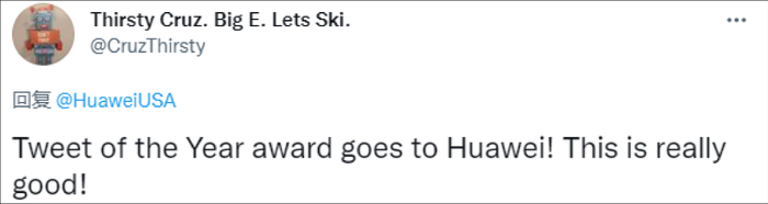 “年度推文奖得颁给华为!这条推文真的很不错。”
