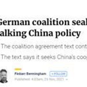 报道称,在这份组阁协议中,德国新政府将其对华关系设定为“在伙伴关系方面,与中国形成系统竞争”,并声称在可能的情况下寻求与中国“基于人权”的合作。