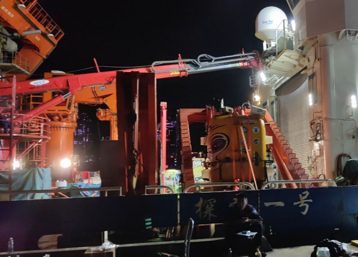晚9点多,薄雾笼罩的黑沉沉的西太平洋波涛汹涌,哈工程科研团队4名成员望眼欲穿地盯着漆黑的海面,焦急地寻找已完成首潜10009米的“悟空号”的身影。