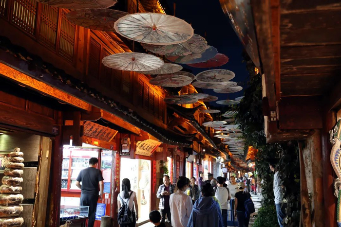 夜游美景缤纷,优质景观添互动体验,安全便捷。丽江古城有31个出入口,全年无休24小时开放。青石板、油纸伞,小桥流水、繁花似锦,在灯光的映衬下,丽江的夜景一度走红网络。篝火打跳、长街宴、河灯祈福、传统节庆,让古城的夜晚更加绚丽。