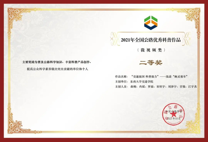 《“交通强国 科普助力”——浅谈“幽灵塞车”》- 微视频类二等奖