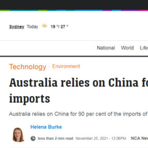报道称,作为“关系到该国未来最重要的技术之一”,澳大利亚却无法做到“独立行走”——澳大利亚进口的太阳能电池板中,90%以上来自中国;澳大利亚全部的太阳能电池板中,约80%为中国制造。