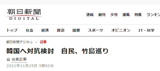 《朝日新闻》:自民党针对“竹岛”事宜讨论对抗韩国措施