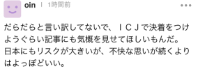 还有人称,“别说这些借口,有种就在报道中写‘咱们国际法院见’。上国际法院日本也会有风险,但也比一直这么难受下去强。”