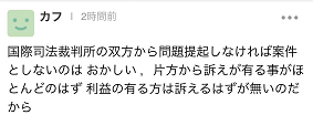 也有日本网民称,“虽然起诉没有被受理,但也是一种对国际社会的表示,韩国却无动于衷继续‘非法’占领。这样下去不管过多久都没法‘解放’,对于这种情况,只有付诸于实际行动这一个选项!”