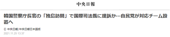 《中央日报》:自民党设置小组,或将韩国警察厅厅长“访问独岛”一事告上国际法院