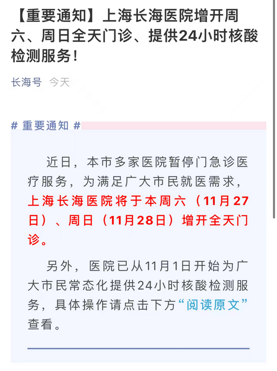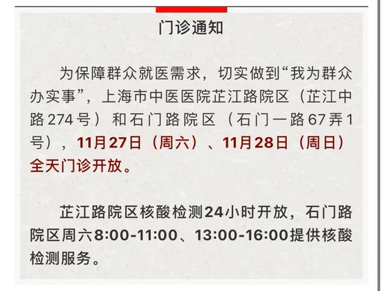 原标题:最新!累计19家医院公告暂停门急诊!7家医院增开周末门诊及24小时核酸检测