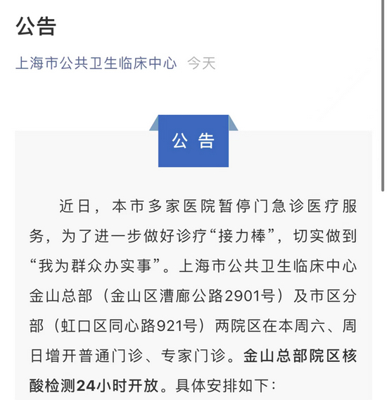 最新!上海累计19家医院公告暂停门急诊!7家医院增开周末门诊