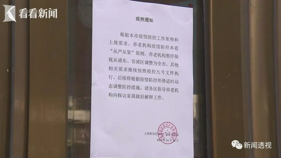 不仅仅是上海各大医院相继停诊,随着疫情防控态势升级,本着从严从紧的原则,今天上午,市民政局下发通知,要求养老机构暂停探视,从昨日的浦东、青浦区调整为全市范围。