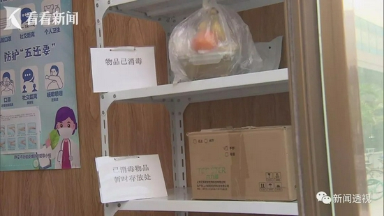 为了老人们的安全,每一份送进养老院的物品、快递都会经过工作人员消毒放置在规定位置由专人递送进院。养老院显眼位置贴着今天下发的“暂停探视”的通知,而养老机构的工作人员也正通过微信群、电话等方式联系家属告知最新的防疫要求。