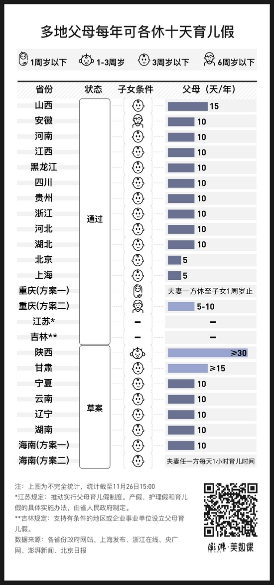 原标题:图解21地生育新政:最长一年育儿假、三胎产假延半年
