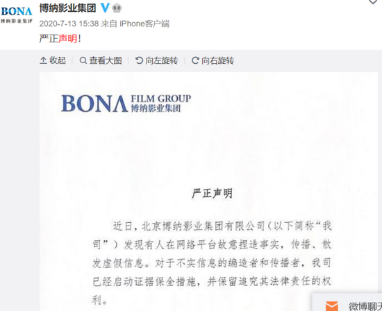 去年7月13日,博纳影业也曾发布声明,但洗米华被捕事件发生后,博纳影业还未表态。其官方微博中最新的动态,是庆祝其出品的电影《长津湖》成为中国影史票房冠军。