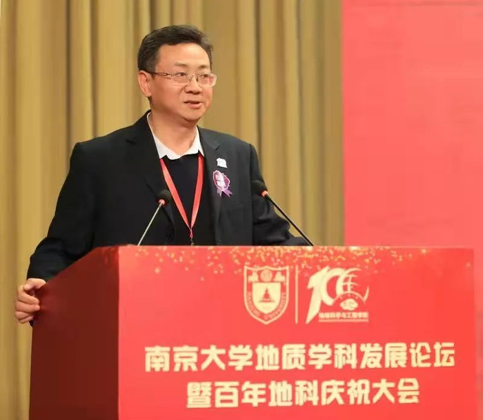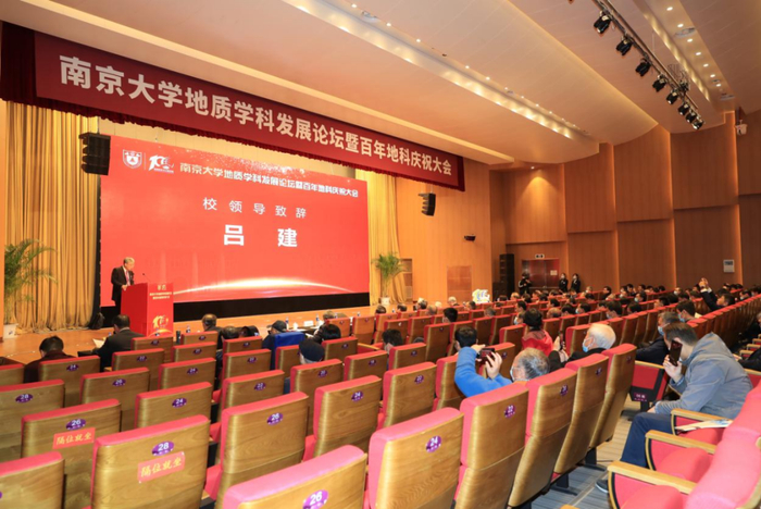 吕建在致辞中指出,南京大学是我国最早一批创设地质学系的高等院校之一,在过去的一个世纪中,南京大学地质学科以及由此发展而来的地球科学与工程学院紧贴时代脉搏、致力民族振兴,书写了辉煌灿烂的历史鸿篇。卓越引领,科教报国,百年地科勇立潮头,与时代同呼吸、与民族共命运;立德树人,桃李芬芳,百年地科学脉绵延,37 位院士在此留下求学或任教的足迹;勇攀高峰,再谱新章,百年地科守正创新,始终面向国际学术前沿,为推动国家科技进步和区域创新发展贡献了重要力量。