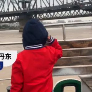 △4岁男孩看完《长津湖》后,乘游船过鸭绿江时自发向断桥敬礼