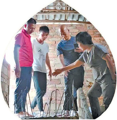 图③:廉江市人大代表李丹(右一)等人出资为被救助家庭修建房屋,并现场指挥施工。