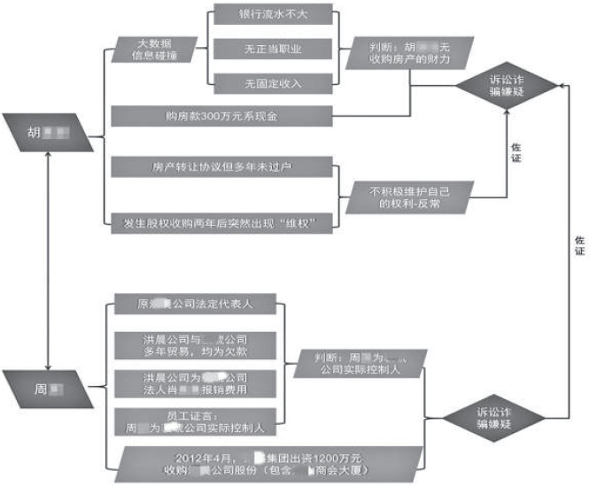 检察机关首先将目标锁定在了胡某及这份“特别债务”的债权人身上。承办检察官先后走访了银行、社保、房产等部门,经对胡某进行大数据信息分析,发现其身上疑点重重:一是胡某无正当职业及固定收入,银行账户资金流水不大,但300万元收购款是现金付清。二是在房产转让协议签订后,胡某多年未过户,在发生股权收购两年后突然“维权”。胡某既无收购房产的财力,又不积极维护自己的权利,这一系列行为较为反常。
